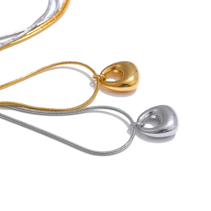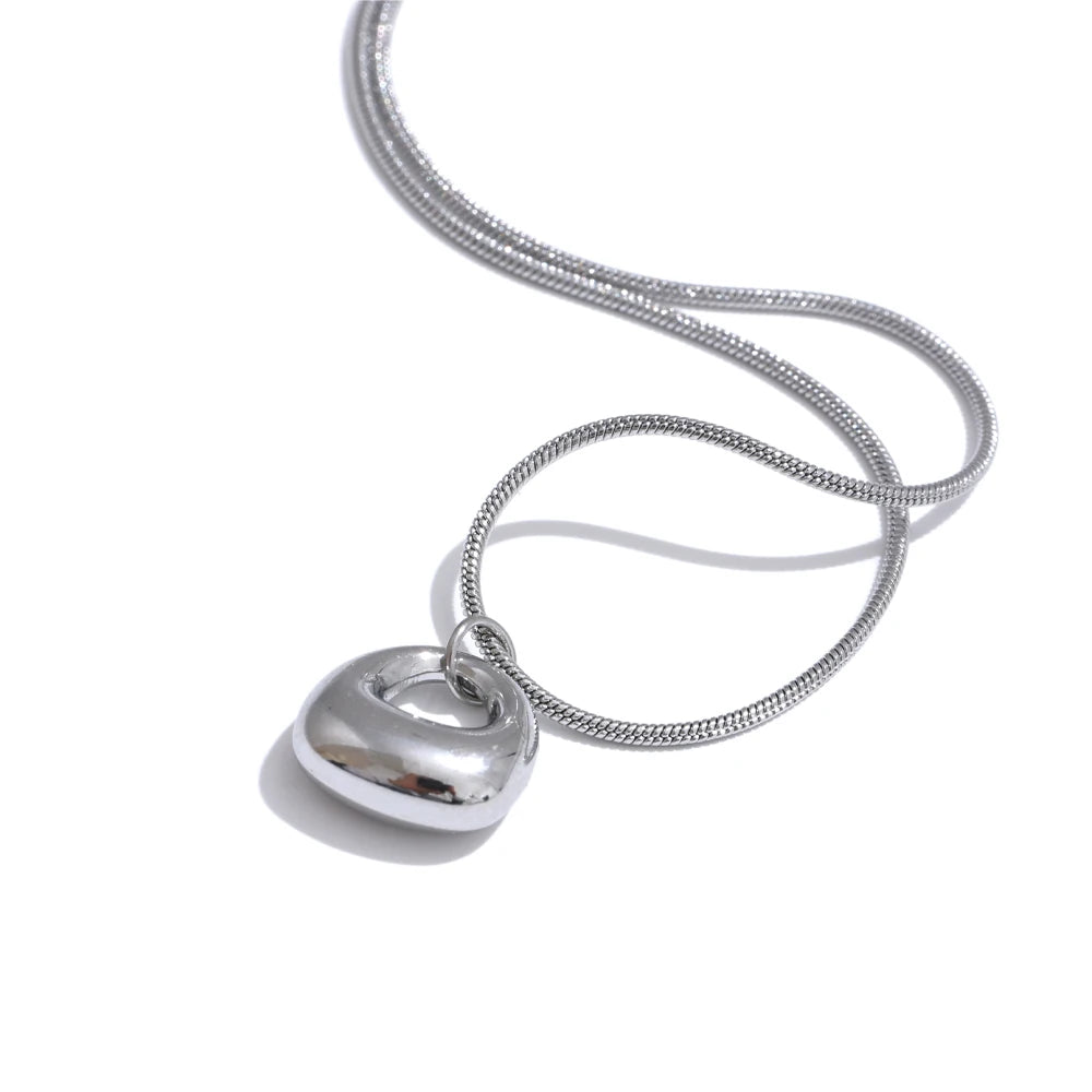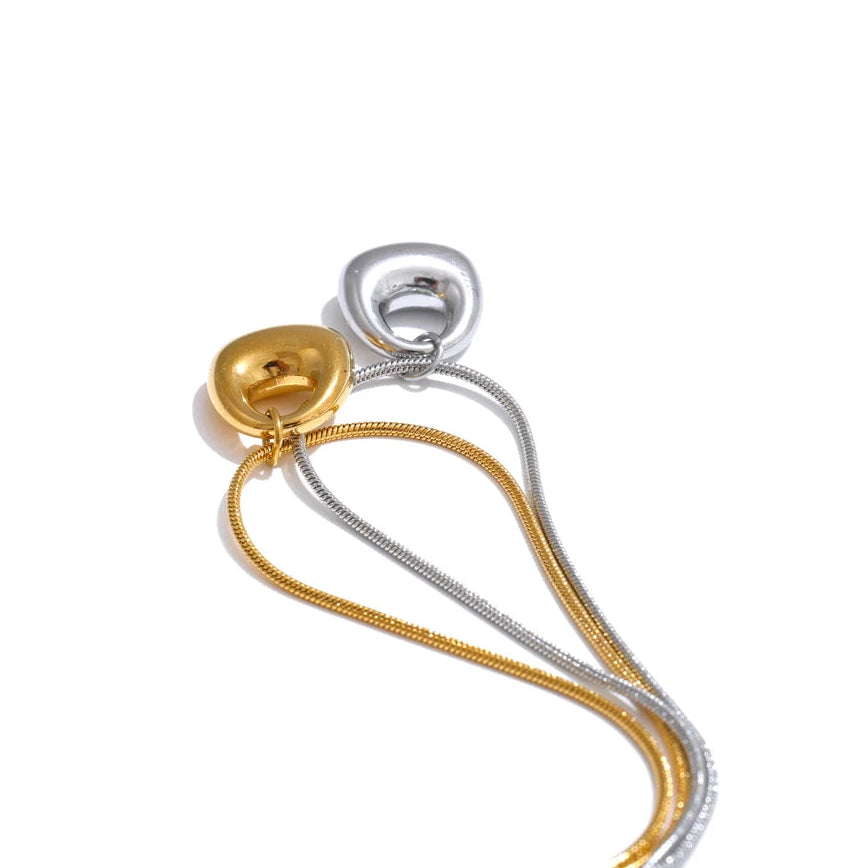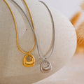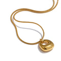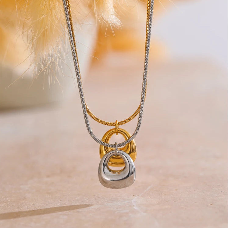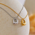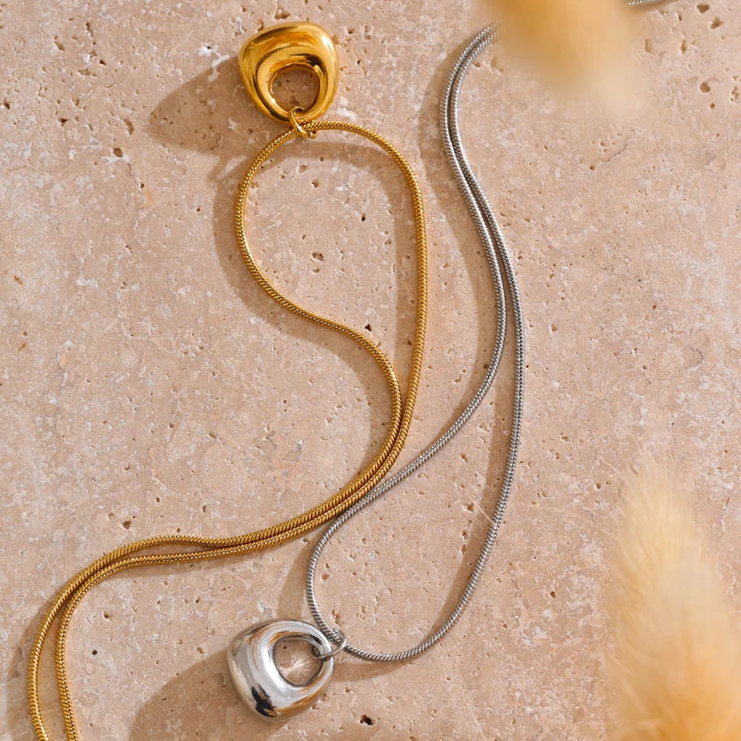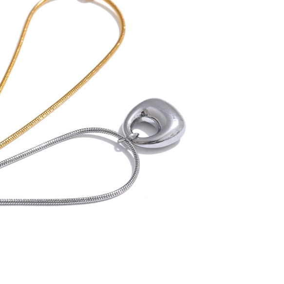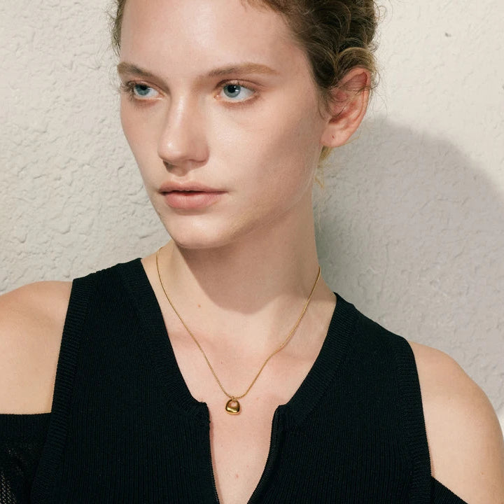 Available in 18K gold plating or 925 silver plating, Lunelle rests on a sleek snake chain that enhances its clean, uninterrupted line. The high-polish surface reflects light effortlessly, giving the piece quiet presence without ornamentation.