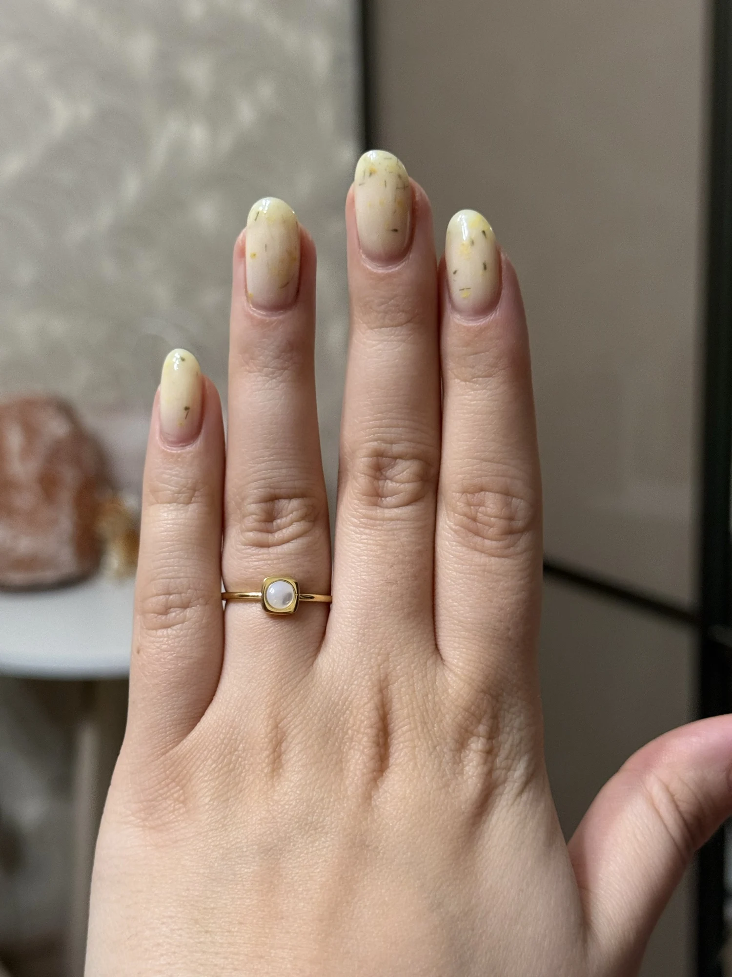 Minimalist design with a pearl-inspired accent