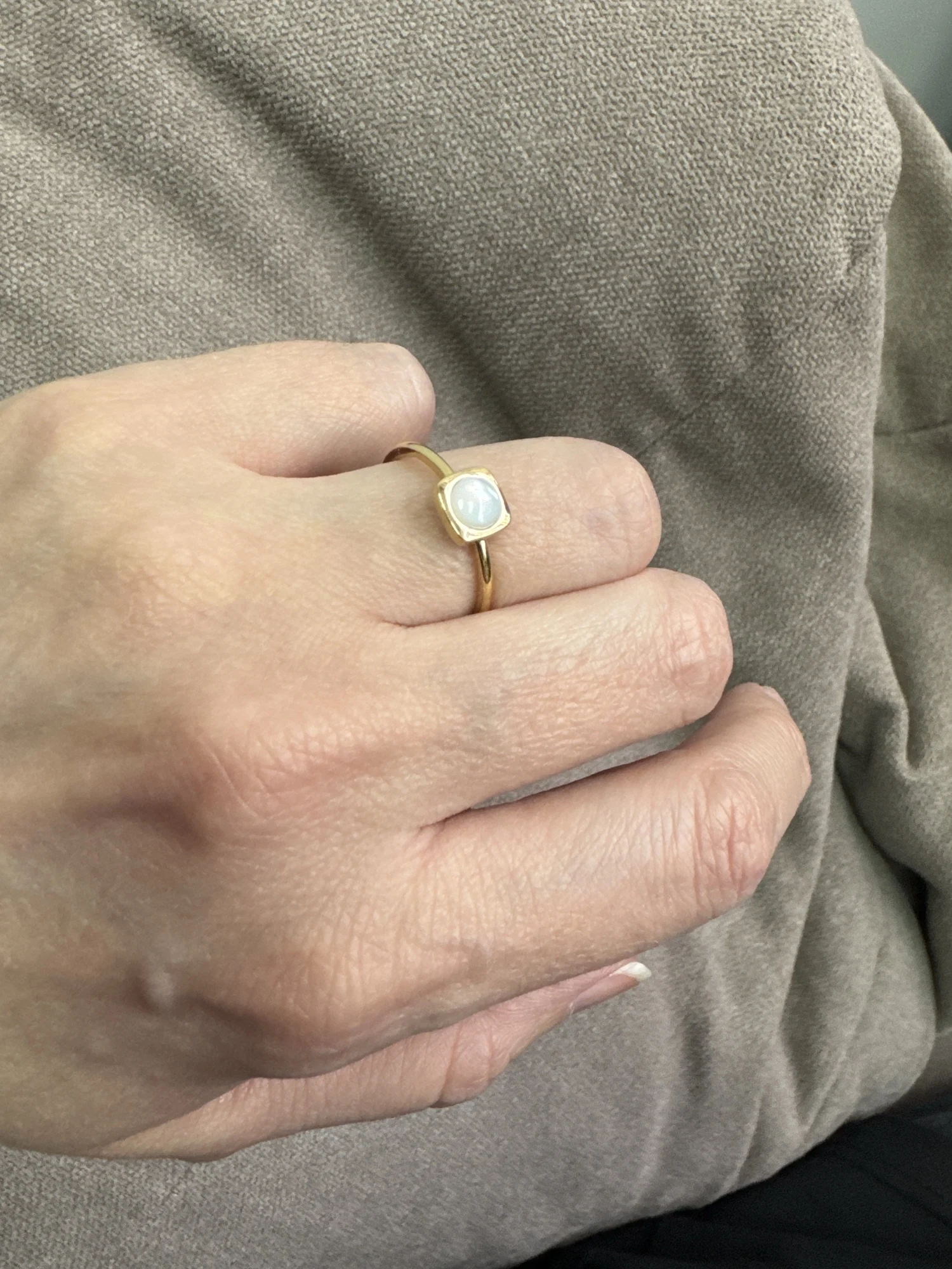 Understated, modern, and effortlessly elegant—the Pure Form 18K Gold Plated Ring is a celebration of simplicity done beautifully. Featuring a sleek open band and a soft pearl-inspired centerpiece framed in geometric gold, this piece blends minimal design with timeless sophistication.